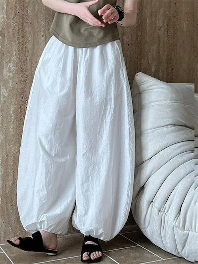 バルーンパンツ パンツ レディース 春夏 ワイドパンツ ロングパンツ ワイド イージーパンツ 楽ちん 綿麻風 ウエストゴム サイドポケット ボトムス カジュアル ゆったり 体型カバー 着?せ ナチュラ