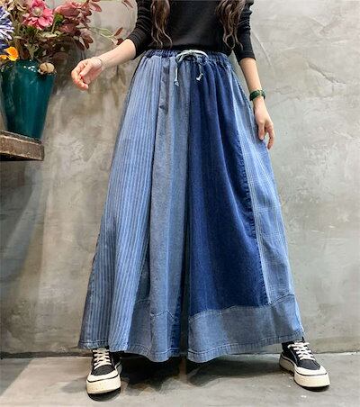 配色デニムパンツ レディース 大きいサイズ パンツ デニム パンツ ワイドパンツ 大きいサイズ レディース 九分丈 パンツ コットン 大人 楽ちん ゆったり デニム ゆったり カジュアル 春 夏 ポケ