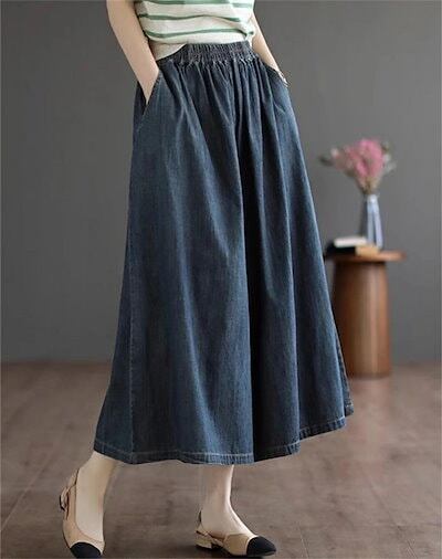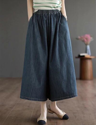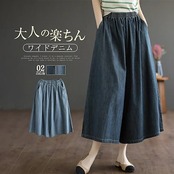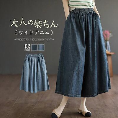ワイドパンツ レディース デニムパンツ ガウチョパンツ パンツ 春 夏 秋 スカーチョ ガウチョ ワイドパンツ スカンツ 七分丈 パンツ 体型カバー 大きいサイズ ウエストゴム ハイウエスト ボトムズ | gizshop
