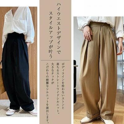 タックワイドパンツ レディース 春夏 ボトムス 2タイプ 春 夏 秋 冬 カーブパンツ ワイドパンツ タック スラックス 美シルエット タックパンツ マキシ丈 マジックテープ 上品 きれ