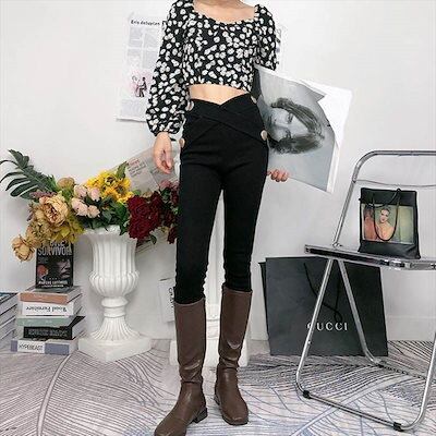 スキニー パンツ ロング丈 タイト スリム 黒 無地 ハイウエスト Vライン 個性的 ストレッチ 伸縮 かっこいい 細身 パンツ ズボン ボトムス レディース ブラックデニム ラフ クール いい女 春 | gizshop