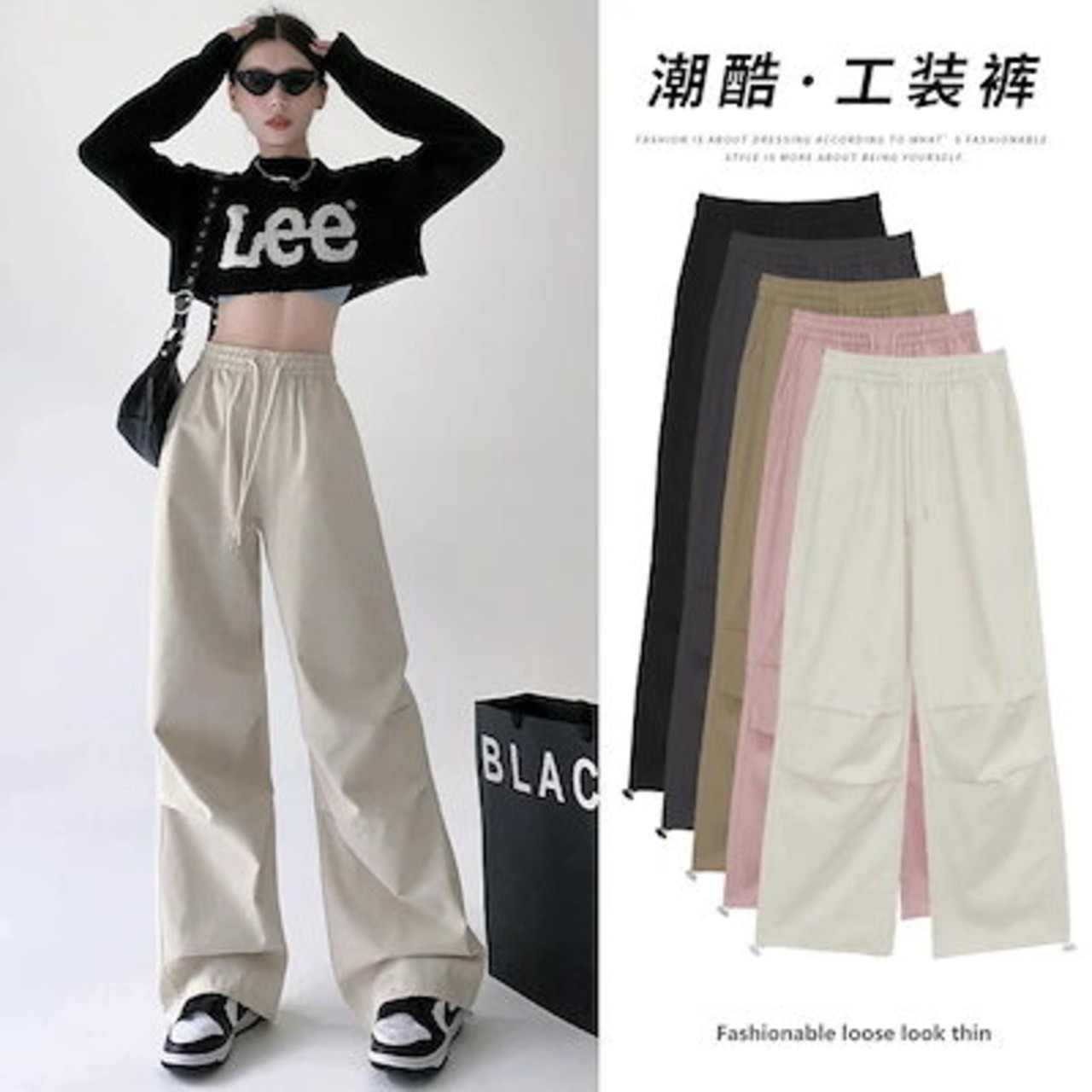 2024秋作パラシュートワークパンツハイウエストカジュアルプリーツワイドパンツレディースハイストリートレトロアメリカンスウェットパンツ