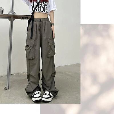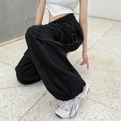 春 ワイドパンツレディース ズライクカーゴパンツゆったりワイドルーズズボンボトムスおしゃれかわいい黒メンミリタリーパンツ カーゴ レディースパンツ テーパードパンツ ダンス衣装 ウエストゴム | gizshop