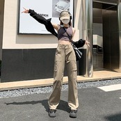 新品 大人気 カーゴパンツ レディース 裏起毛 ワークパンツ ハイウエスト ワイドパンツ 秋冬 ロング ボトムス カーゴ 無地 カジュアル ゆったり おしゃれ