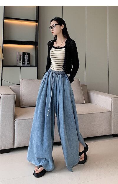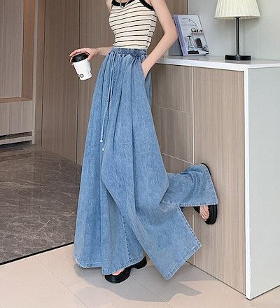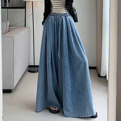 ワイドパンツ レディース 秋 冬 長め ロング丈 デニムパンツ パンツ デニム フレアパンツ ジーンズ ボトムス ゆったり 体型カバー ウエスト 大人 ウエストゴム 着?せ 美脚 おしゃれ きれいめ | gizshop