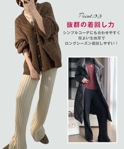 ニットパンツ フレアパンツ レディース パンツ ボトムス リブニット 秋冬 ゆったり ワンマイルウェア 大人 ニットフレアパンツ 秋 冬 イージーパンツ フレアパンツ おしゃれ きれいめ カジ | gizshop