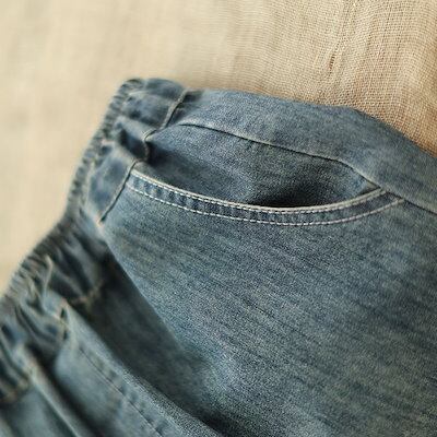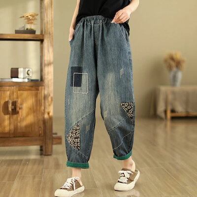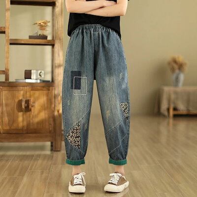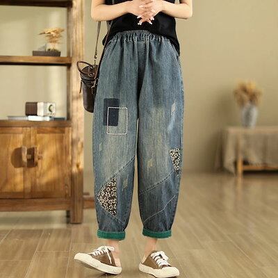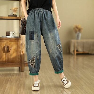 デニムパンツ レディース ジーパン サルエル ワイドパンツ サルエルパンツ ジーンズ デニム パンツ アンクル丈 カジュアル パンツ ボトムス ゆったり ウエストゴム 楽チン 刺繍 楽チン おしゃれ