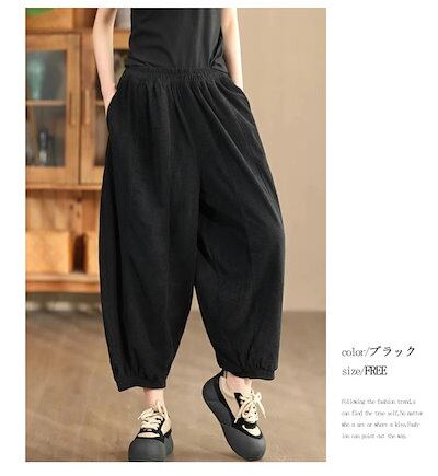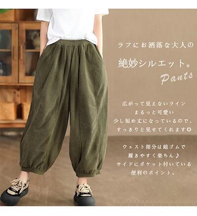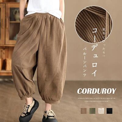 バルーンパンツ レディース 50代 コーデュロイ パンツ ブラック アンクル コットン 綿 コーデュロイパンツ 大きいサイズ ゆったり バルーン ボトムス コクーンパンツ ゆったり 体型カバー サルエ