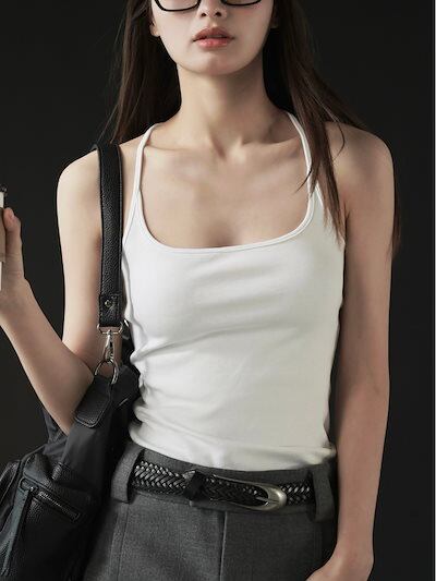 SpaceGirl夏新作 アメリカンレトロ スパイスガール タイトホルタートップ ヌード 肌に優しい カジュアル ノースリーブ トップス レディース