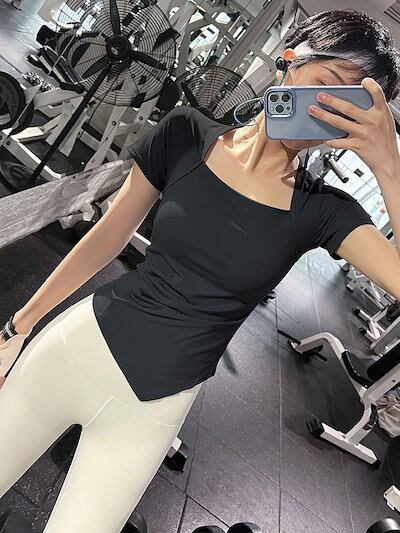 おしゃれヨガウェア トップス おしゃれ イレギュラー 半袖 ランニング 運動 Tシャツ ジムウェア 弾力 スリミング 速乾性ウェア tシャツ 半袖 レディース