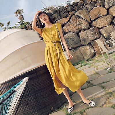 ノースリーブシフォン ワンヒース レディース ロングワンピース 韓国 体型カバー 気質 通勤 百掛け ドレス ワンピース 夏