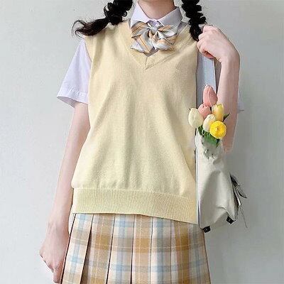 制服ベスト無地スクールベスト正統派春夏用涼しい制服ベスト大人気ニットベスト女子高生通学学生中学JKJCVネック夏無地定番レディースシンプル人気かわいい黒白紺ピンクグレー