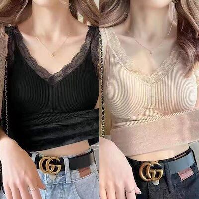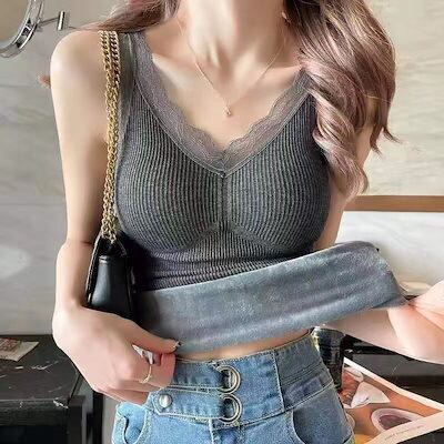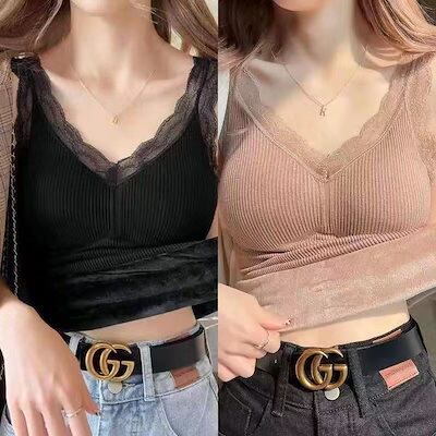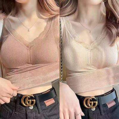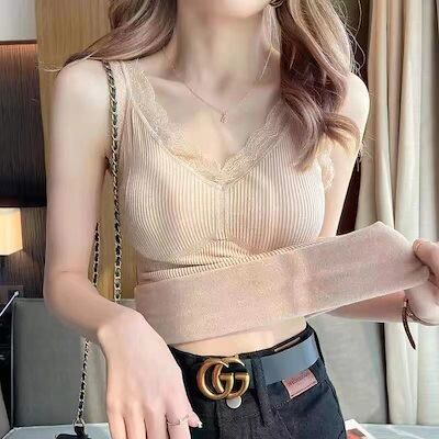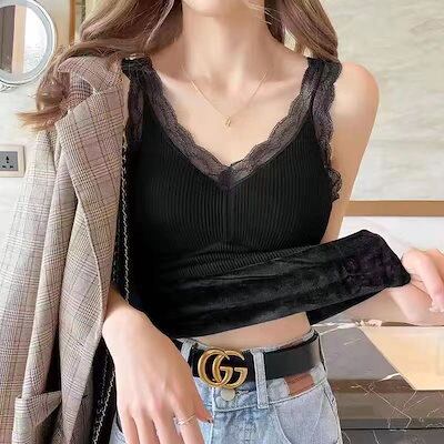 2枚セットレディース ファッション 裏起毛 キャミソール カップ付き インナー レース付き おしゃれ 防寒 暖か タンクトップ 肌着 トップス
