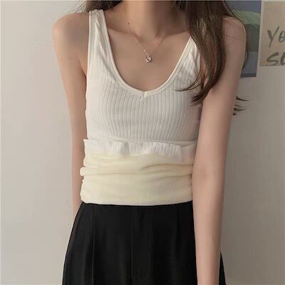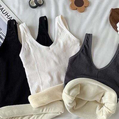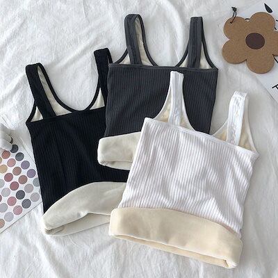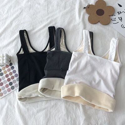 韓国ファッション 柔らかい 快適 キャミソール レディース 裏起毛 防寒 保温 インナー トップス タンクトップ 無地 シンプル 2枚セット
