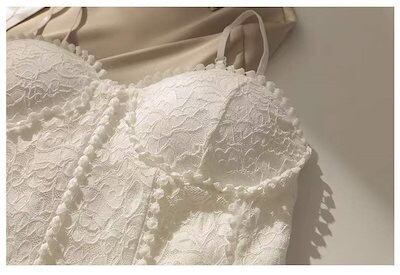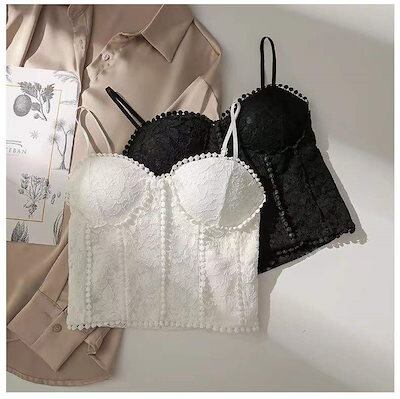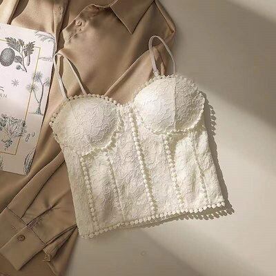 レディース フレンチレトロ カップ付きキャミソール レース ブラ パットカップ 下着 夏 可愛い インナー トップス イ