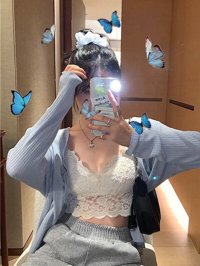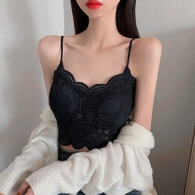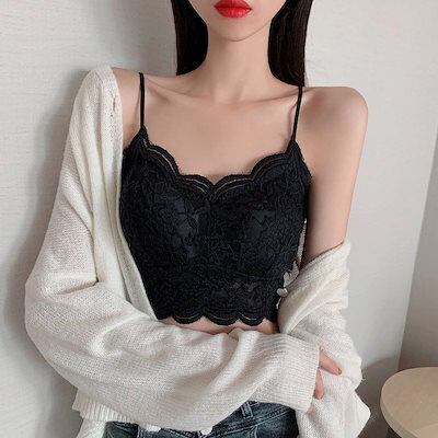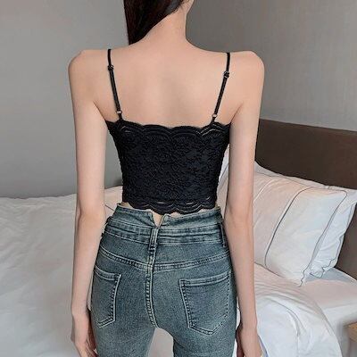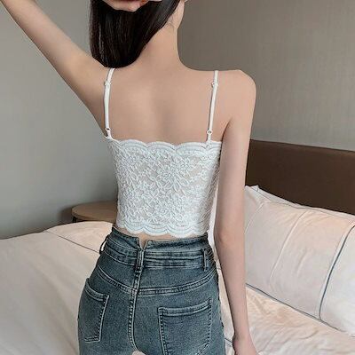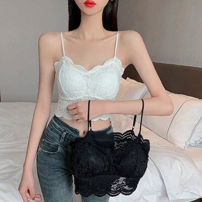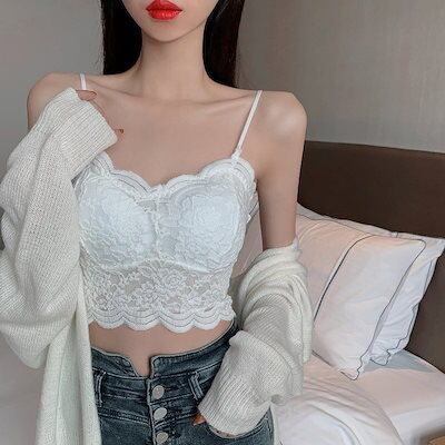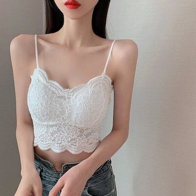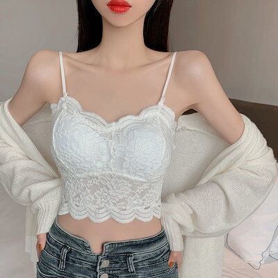 ギャル カップ付きキャミソール レース ブラ パットカップ 下着 レディース 夏 キャミ 可愛い ショート丈 Vネック トップス