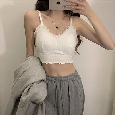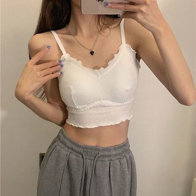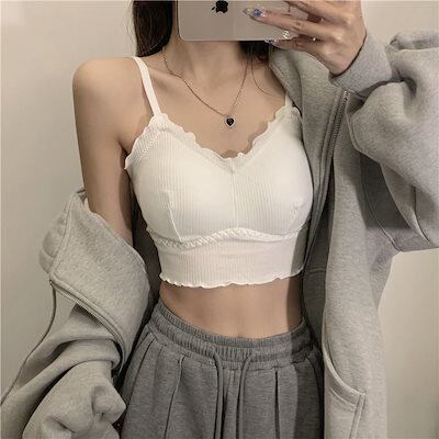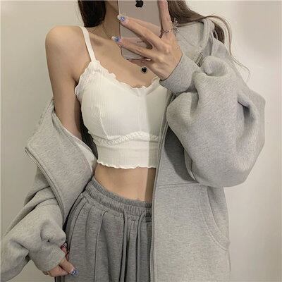 韓国ファッション カジュアル タンクトップ カップ付きキャミソール インナー レディース 無地トップス 定番 着痩せ