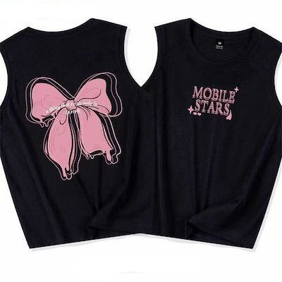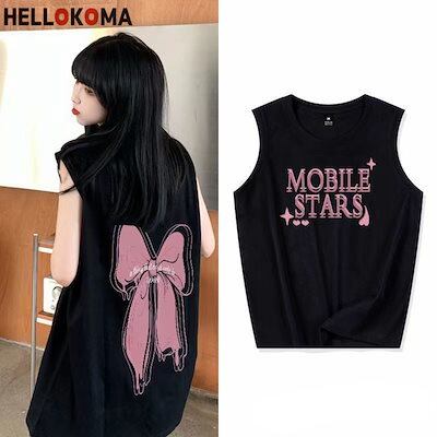 日系 甘クール リボンプリントノースリーブレディース 外着タンクトップ ゆったりストリートトップス