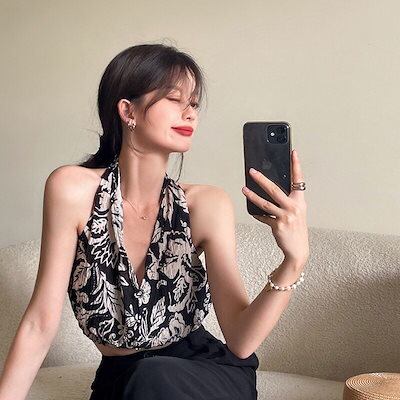 ノースリーブ トップスギャル タンクトップ レディース ショート丈 夏 美背 キャミソール