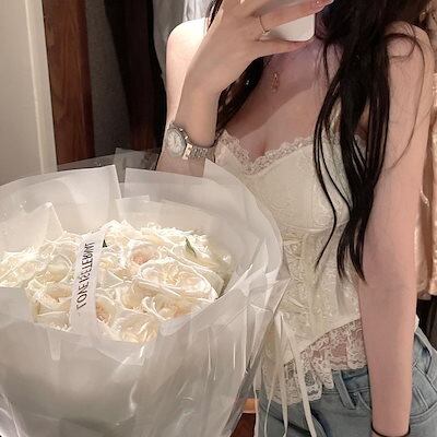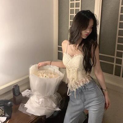 韓国ファッション カップ付きキャミソールブラ レース パット カップ レディース 夏 キャミ 可愛い 夏服 着痩せ セクシー トップス
