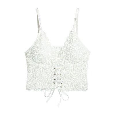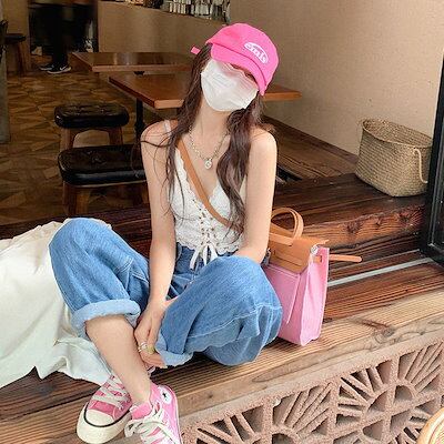 フレンチ レースキャミソール レディース 夏 カップ付きインナー デザイン ギャルショート丈 トップス