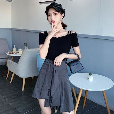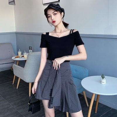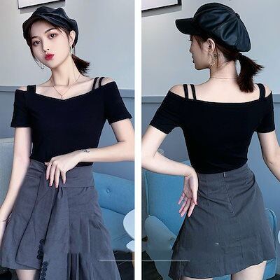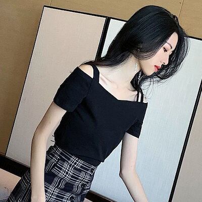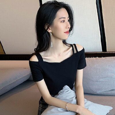 肩出し 半袖Tシャツ レディース トップス ティーシャツ スリミング キャミソール セクシー