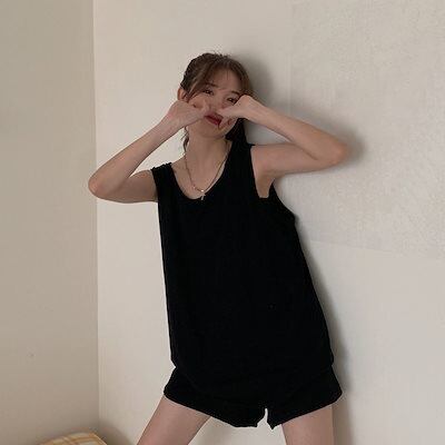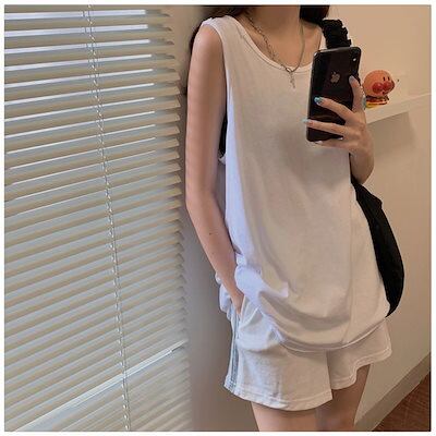 ファッション 重ね着コーデやインナーに!シンプルタンクトップ ノースリーブ キャミソール 無地 インナー ゆったり レディース