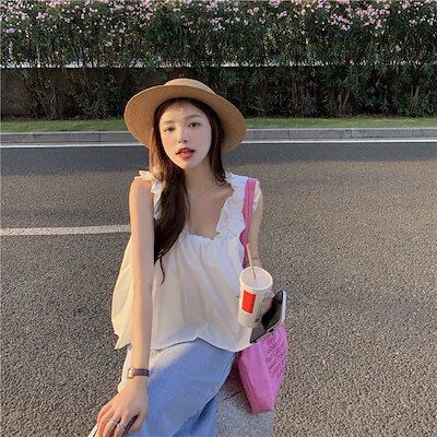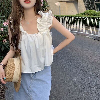 レディース ファッション 甘い デザイン感 大きいサイズ キャミソール 着痩せショート丈タンクトップ ノースリーブトップス