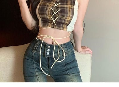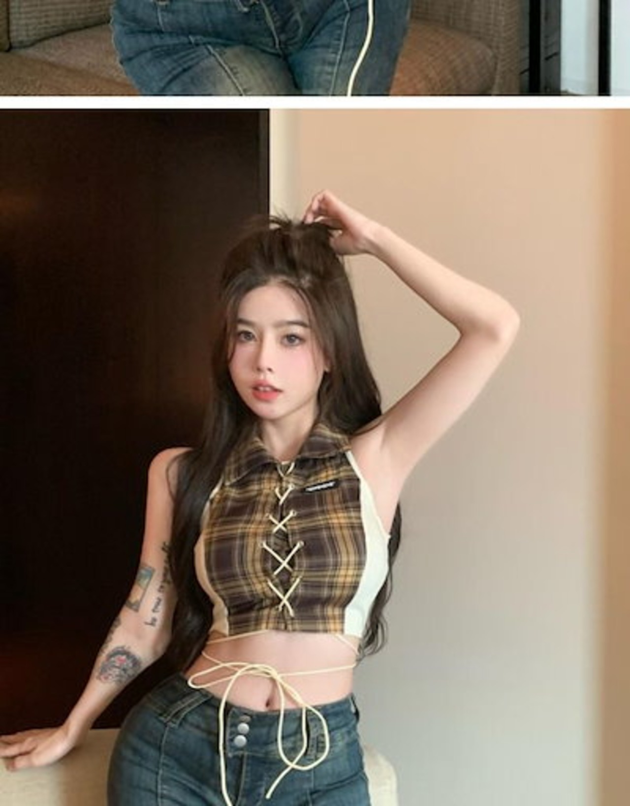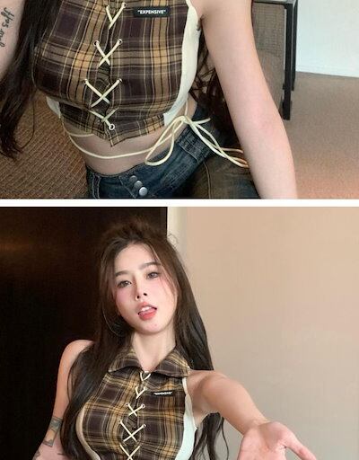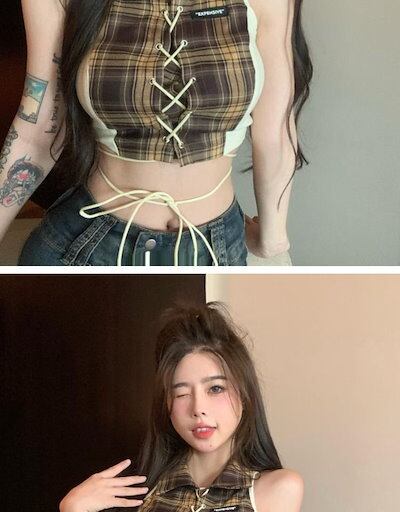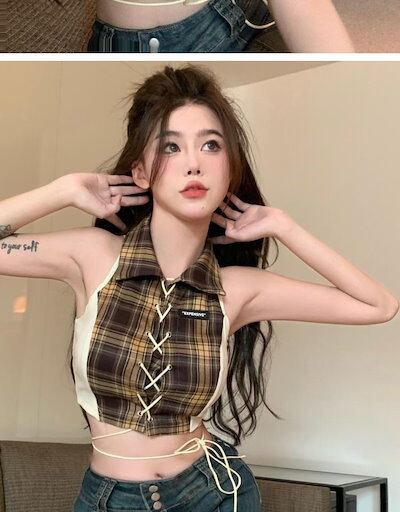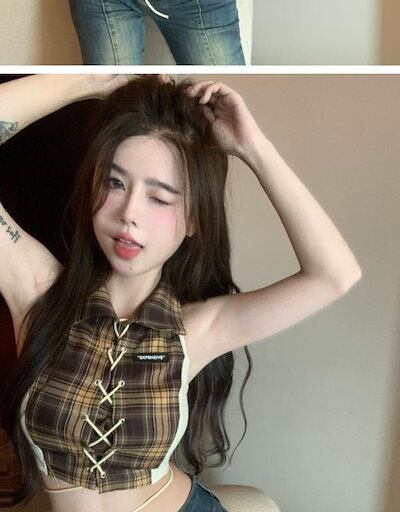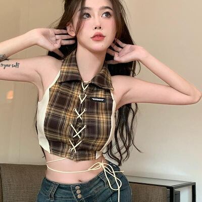 韓国ファッション レディース女性夏アウターハイウエストおへそ出しショート丈甘ギャルノースリーブトップス