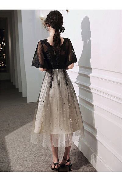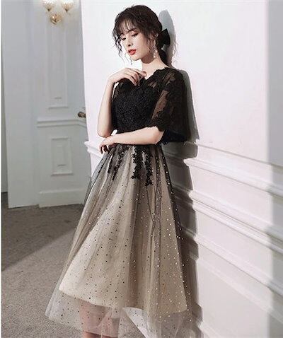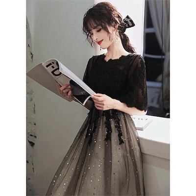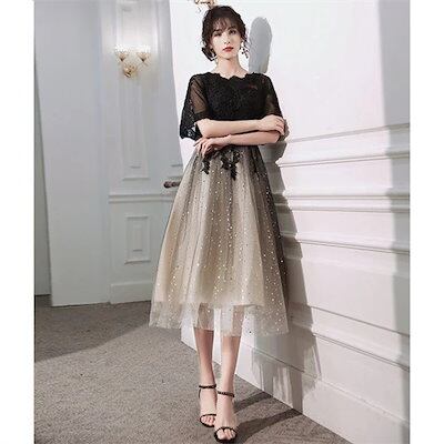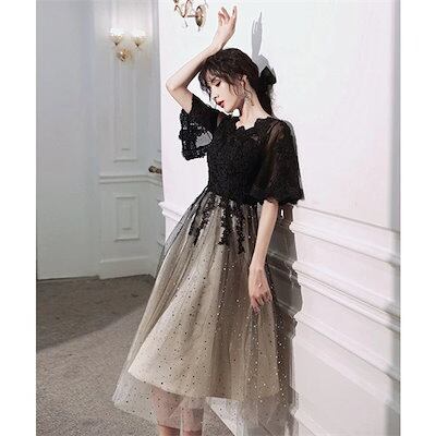 パーティードレス 結婚式 ワンピース ドレス 袖あり レース 食事会 二次会 披露宴 卒業式 成人式 謝恩式 着痩せ 可愛い 上品