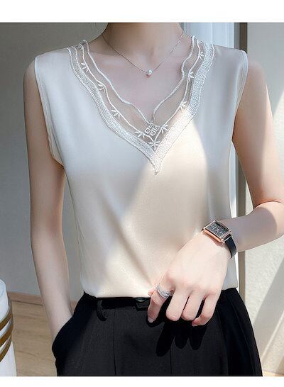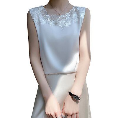 シルクキャミソール レディースノースリーブドレッシートップス シルクブラウスの下に刺繍入りセクシーレースVネックブレザー