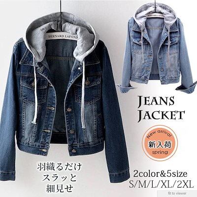 メガ割り デニムジャケット レディース Gジャン ジージャン デニムジャンパー ブルゾン 羽織 デニム 長袖 フード付き ドロップショルダー