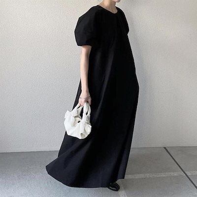 SUPER SALE開催中 ロングワンピース コットン リネン 体型カバー ロング丈 大きいサイズ ゆったり 着痩せ 綿麻風 Aライン おしゃれ 30代 40代 50代 夏 秋