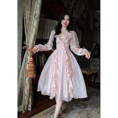 パーティードレス 2023 新作 夏 プリンセススカート ピンク 着痩せ ドレス ワンピース