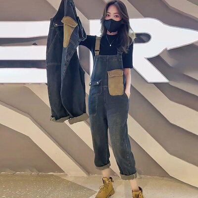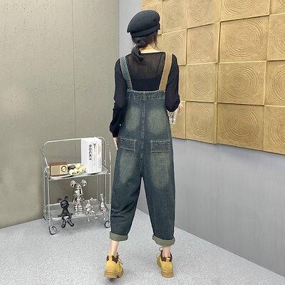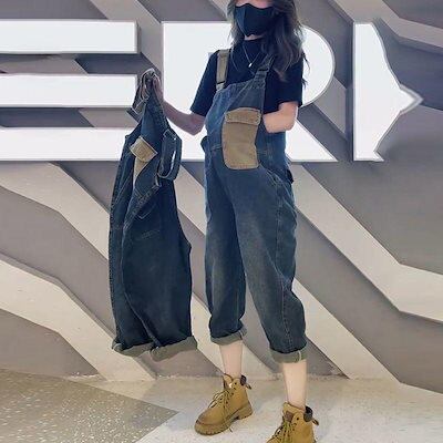 サロペットパンツ/レディース/オールインワン/オーバーオール体型カバーチュニックワイドパンツス コーデ完成!サロペット