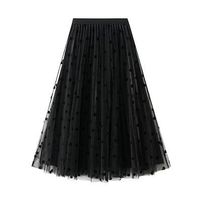 【 3日で出荷 】マキシスカートスカート ドットチュールスカート春の新作ハイウエストドレープ感リバーシブルプリーツスカート大振りA字スカート脚魅せミニスカート