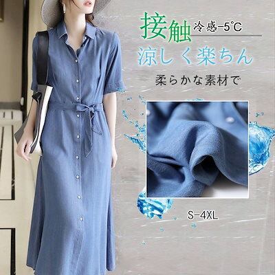 【毎日厳選 】 2024新作 シンプル 大きめサイズ 高級感 シャツワンピース uvカット 半袖 夏服 接触冷感 リゾートワンピース ゆったり ロングワンピース 夏 冷感 紫外線対策 ヘビロテ