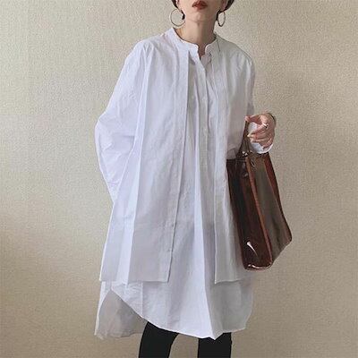 ブラウス長袖ロングレディースレイヤードロングシャツチュニック丸襟トップスロングエレガンカジュアル秋ボタン付き カジュアルゆったり 体型カバーシャツワンピースロング白シャツ長袖トップス着痩せ通勤