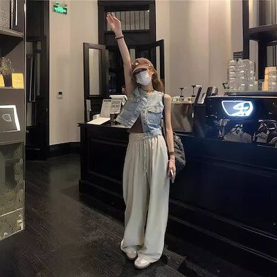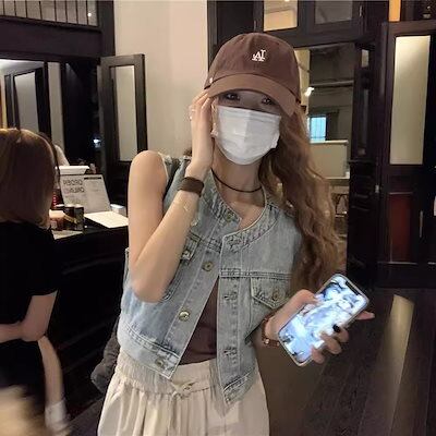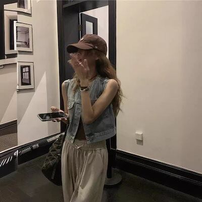 春夏の新作レトロカジュアルショート丈ノースリーブデニムベスト