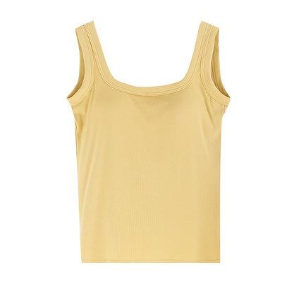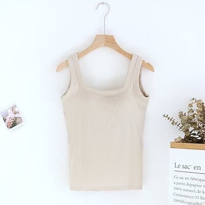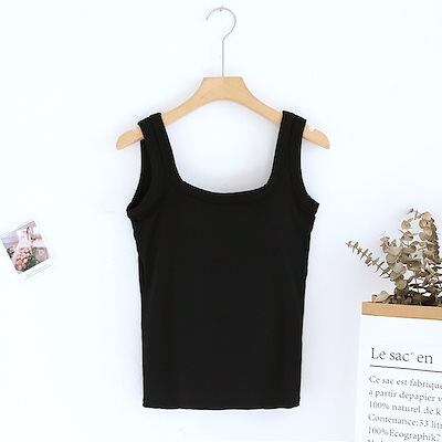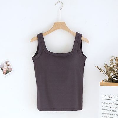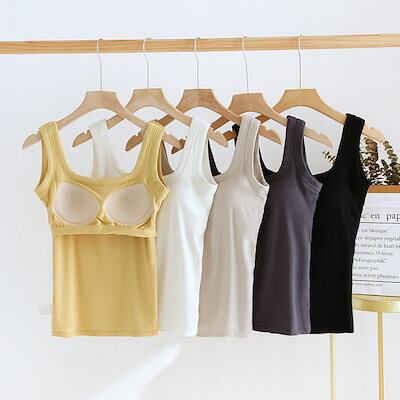 韓国ファッションカップ付きインナー カップ付きキャミソール 夏に快適 ブラトップノースリーブ カップ付きインナースリミング 無地 タンクトップ