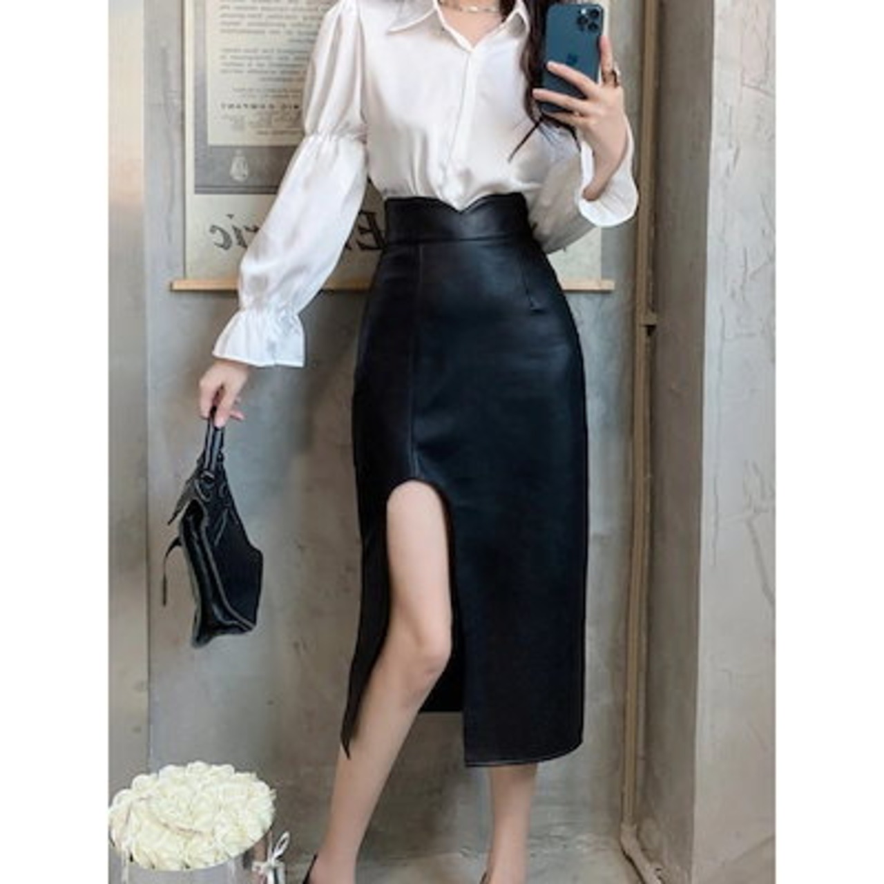 プリーツスカート2024 ニュースタイル セクシー おしゃれ スリット スカート ハイウエスト 着痩せ PUプリーツスカートマーメイドスカート