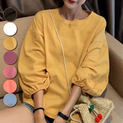 カットソー レディース 半袖 夏 Tシャツ パフスリーブ 無地 ドロップスリーブ カジュアル トップス