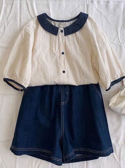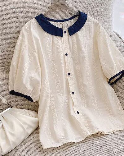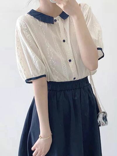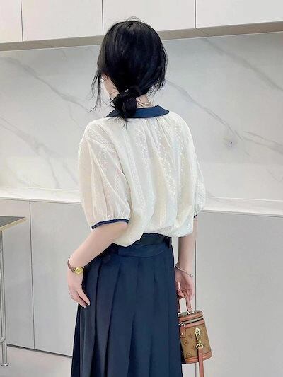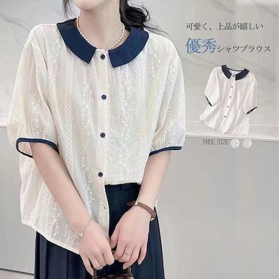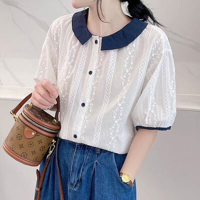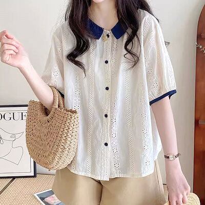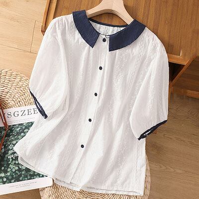 シャツブラウス 白いシャツ 綿 レディース 春 夏 春夏 白 シャツ トップス 刺繍 きれいめ 5分袖 半袖 チュニック 上品 ホワイト 半袖シャツ ボリューム袖 無地 カジュアル 20代 30代 4