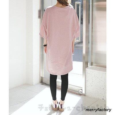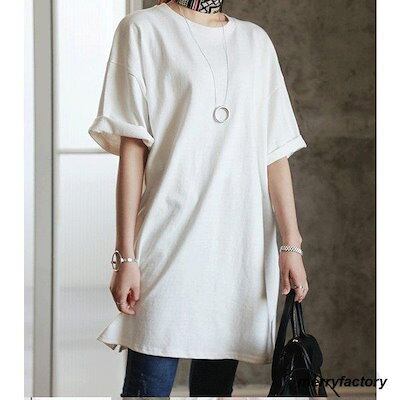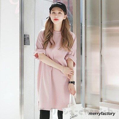 新品掲載!Tシャツワンピース レディース 無地 シンプル 夏 ミディアム丈 カットソー 半袖 チャイナカラー 丈長め 卒業式