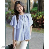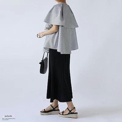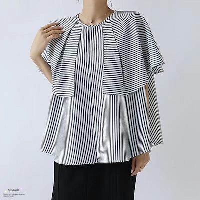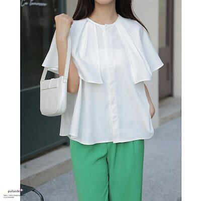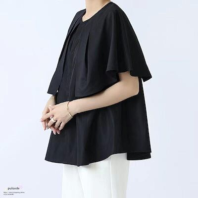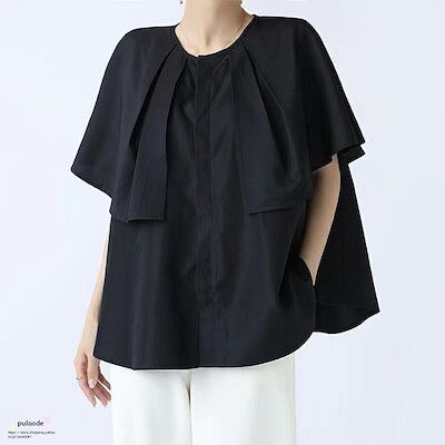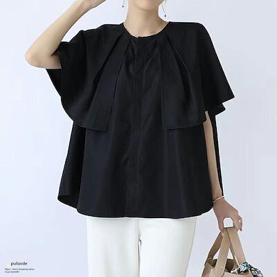 限定SALE!ブラウス ケープ レディース トップス ビッグカラー 半袖 ラウンドネック フレア フリル オフィス カジュアル きれいめ 大人 無地 上品 フォーマル ストラ