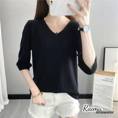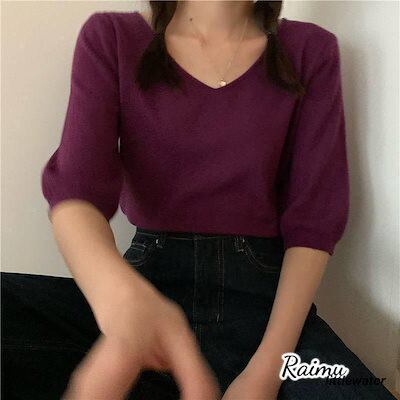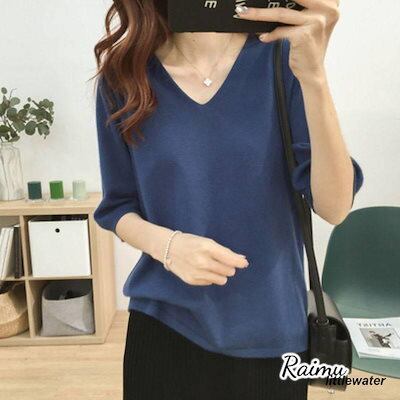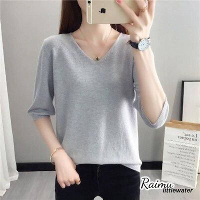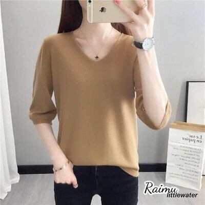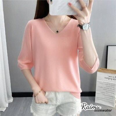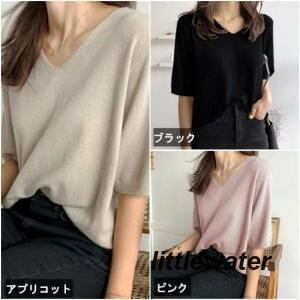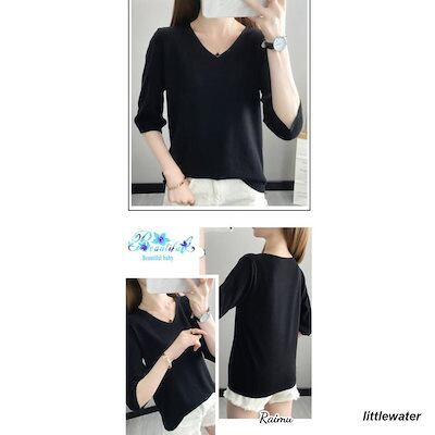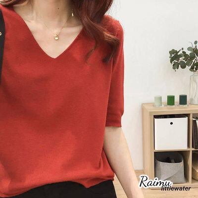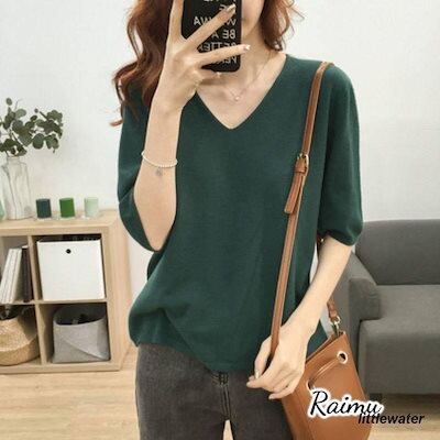 新品登場 半袖ニット 半袖セーター サマーニット Vネック レディース 春 大きいサイズ トップス プルオーバー 薄手 無地 シンプル カジュアル体型カバーraimu