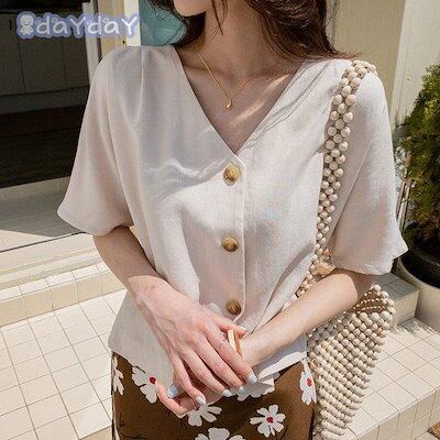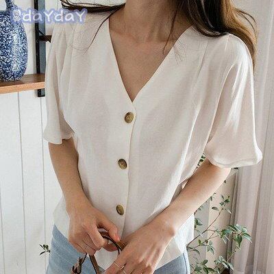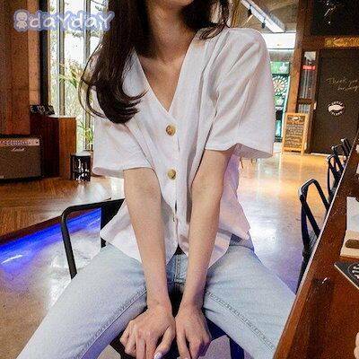 売れ ブラウス レディース きれいめ 春夏 40代 無地 半袖 ゆったり カジュアル ブラウス オフィス 可愛い おしゃれ 風 ショート 通勤 ブラウス 2色