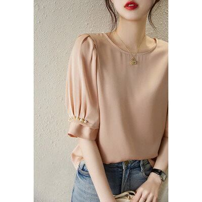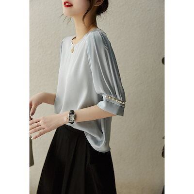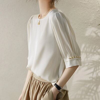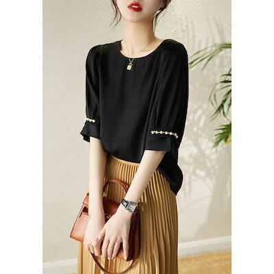 ブラウス レディース 半袖ブラウス 春夏 オフィスブラウス 無地パフスリーブ オシャレブラウス レシ