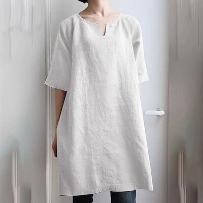 チュニック レディース トップス シャツ ブラウス tシャツ ロング 半袖 夏 無地 大きいサイズ