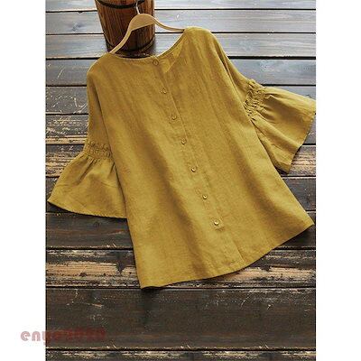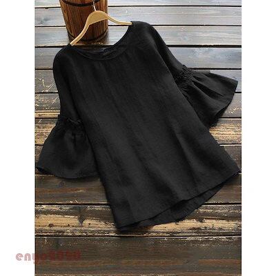 ブラウス レディース チュニック トップス 夏 5分袖 シャツ 無地 フリル フレア カットソー 体型カバー ドルマンスリーブ ゆったり 大きいサイズ 30代 40代